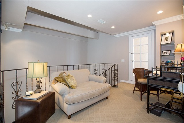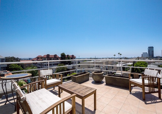 Beautifully remodeled front facing top floor two story condo that feels like a home! Great location to walk to everything in Brentwood! Large gourmet kitchen with breakfast bar and newer appliances, vaulted ceilings in the living room with a fireplace. Upstairs has office area plus master bedroom and spa bathroom with a rooftop patio. Central air & heat, side by side parking and huge storage room. Washer/Dryer in unit.