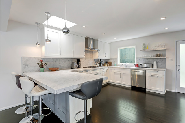 Stunning 4BR Contemporary newly remodeled home with Ocean views! This home entails indoor/outdoor living at its finest! Dramatic cathedral ceilings from the moment you walk in with beautiful hardwood floors and loads of natural light! A beautiful remodeled kitchen that opens to a dining room with a cozy fireplace! A vision of comfort and elegance throughout with a great room with high ceilings and French doors that lead to a central courtyard, gracious outdoor entertaining spaces and a private pool! Upstairs sitting room has a fireplace and views of the ocean. Master bedroom has a spa-like bathroom with beautiful European stone! Ocean Views from every floor and gorgeous remodeled bathrooms throughout the house. Truly a special home and rare to find in the Palisades!
