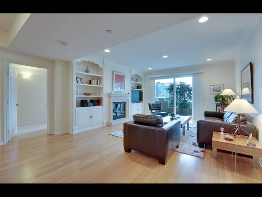 Designer perfect front Penthouse with views built in 2003 and recently updated! Great entertainment floor plan with hardwood floors, spacious dining and living area with beautiful built-ins which open to a large terrace. Gourmet granite kitchen with stainless appliances. Large Master bedroom suite that opens to a terrace, 2 closets and spa-like marble bathroom. 2nd bedroom on opposite side of home with a large bedroom and marble bath. Laundry in unit. S/S parking, extra storage unit, fabulous location to freeway & restaurants.