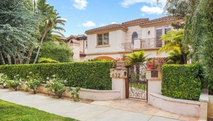 Gorgeous Contemporary Mediterranean home designed by famed architect Richard Landry in North of Montana neighborhood. As you enter there are vaulted ceilings with a beautiful winding staircase. Loads of natural light fill this home with spacious Living room with fireplace, plus French doors to the front outdoor patio & leads to Dining room which gives an open entertainment flow. Large gourmet kitchen with island and top of the line appliances plus breakfast nook that opens to the family room w/built-ins, fireplace & French doors to the yard, plus Powder room, office/bedroom complete the downstairs. Two more En-suite bedrooms upstairs plus a grand primary bedroom, spa bathroom, dual closets & large terrace overlooking the private yard with pool, Guest house, & Garage has been turned into another entertainment room, plus 2 Car carport off alley. Also available for lease at $20,000 per month. Square footage includes guest house.