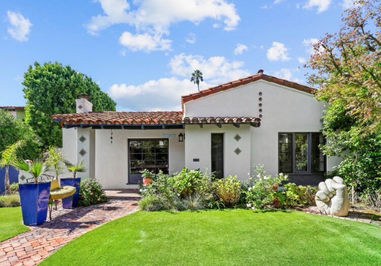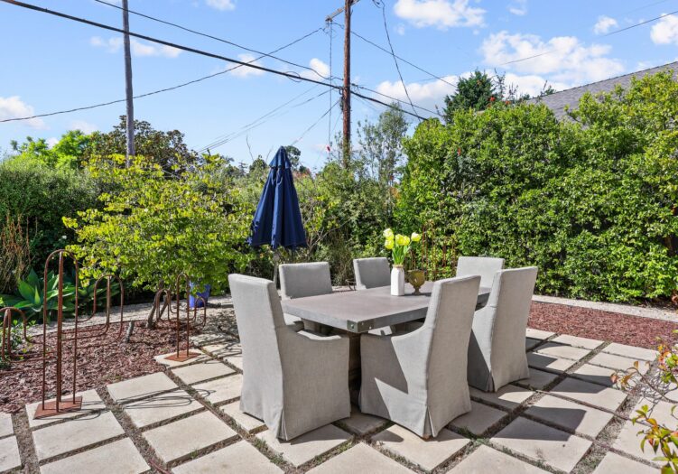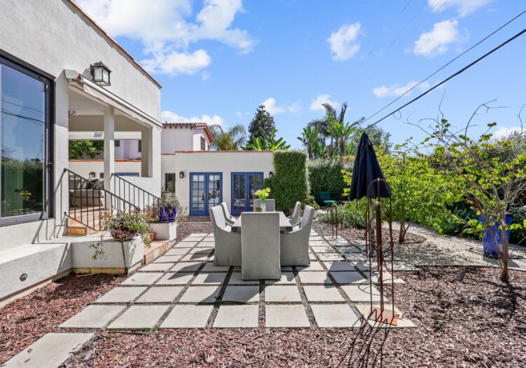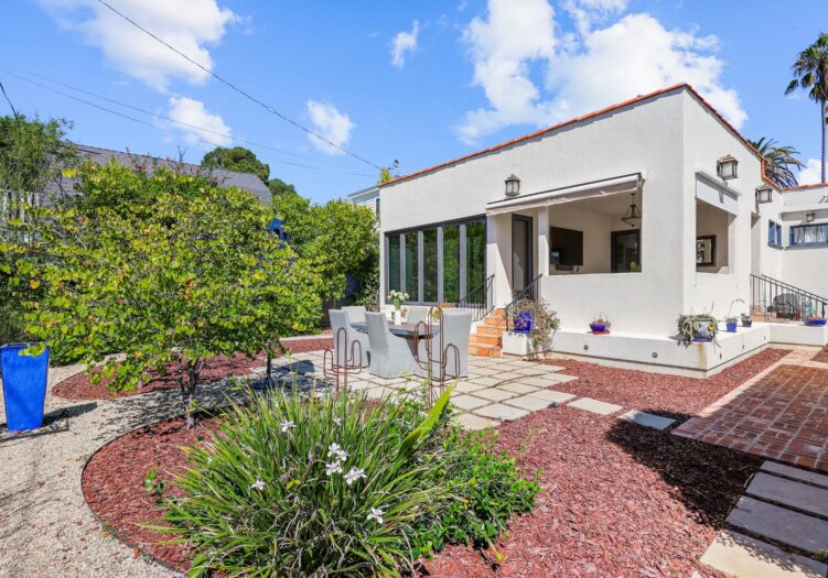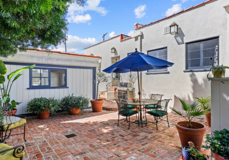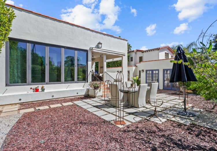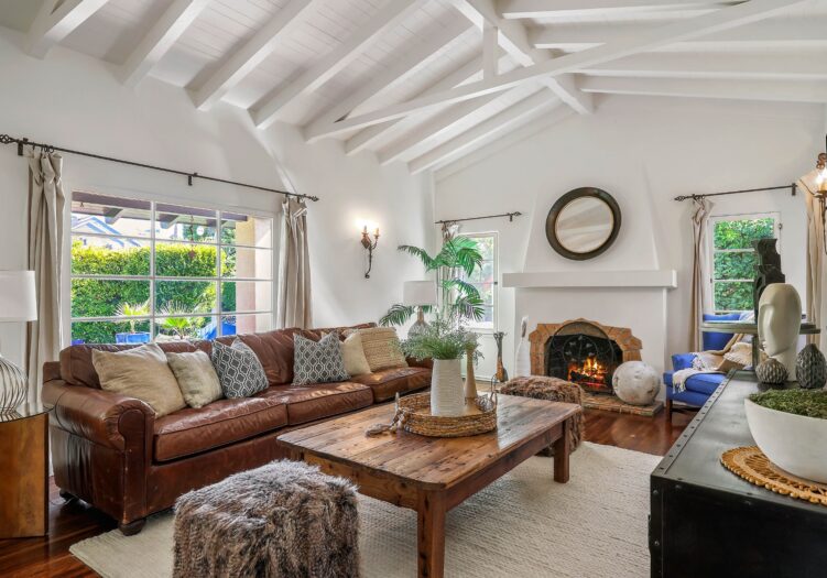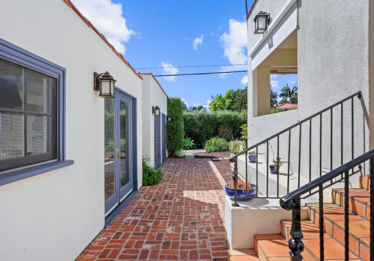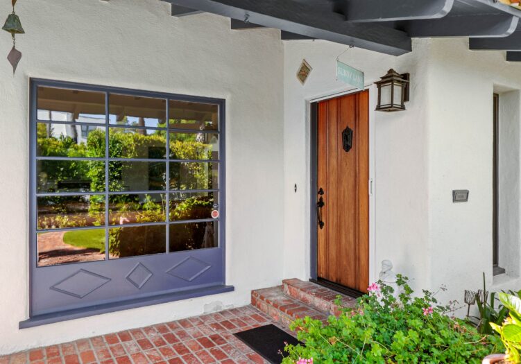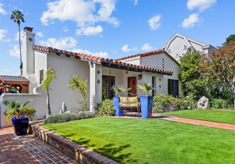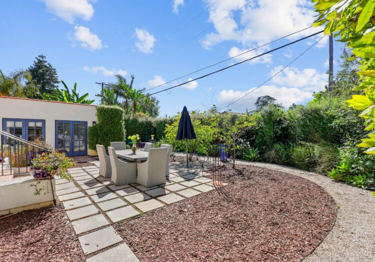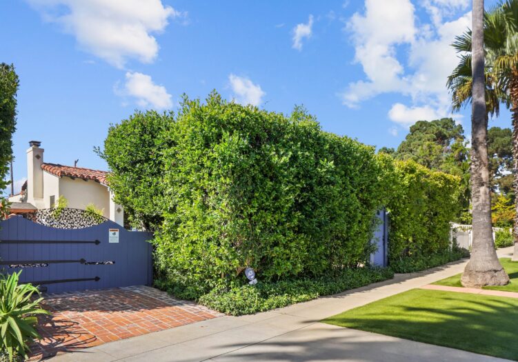 As you walk in through this gated charming entrance, you are greeted with a Zen like feeling! This special Romantic Renovated 1930's Spanish Single Story home encompasses vaulted beam ceilings in the living room with a cozy fireplace which leads to a sumptuous state of the art kitchen with top of the line stainless appliances and large island, breakfast bar, plus dining room for family gatherings! The house also entails hardwood floors throughout, beautiful archways and period built-ins plus loads of natural light and skylights! Two other generous sized bedrooms share a bathroom. The oversized primary suite has floor to ceiling doors overlooking the beautiful yard, large sumptuous bathroom with soaking tub, skylights and walk-in closet! As you walk outside you are greeted with a covered media/family room which is great for entertaining!! The yard has a fire pit area and is currently planted with drought conscious desert landscape which gives you plenty of room to create your own personal oasis and room for a pool! The detached garage was made into an office and 1BR guest suite with a bathroom. Garage can be converted back and still have a guest house/outside office! Upgraded tankless water heater, water filter system throughout, electric vehicle charger and back-up generator. Close to restaurants & shopping and all Montana Ave. has to offer! This one won't last!