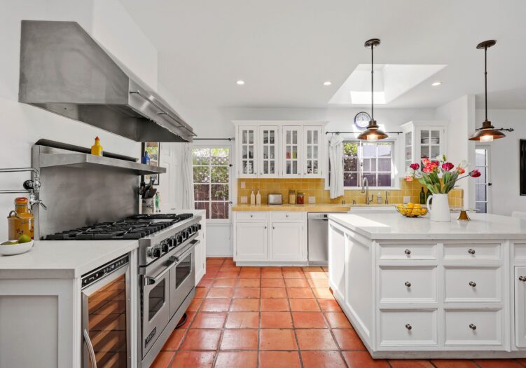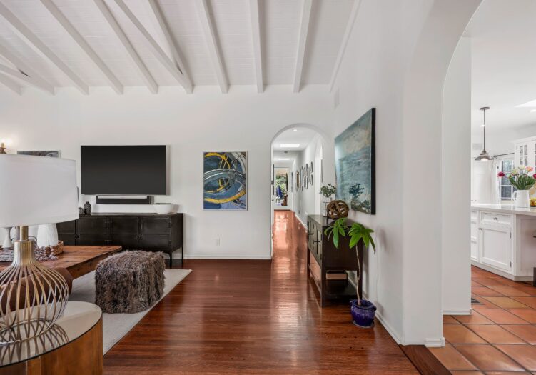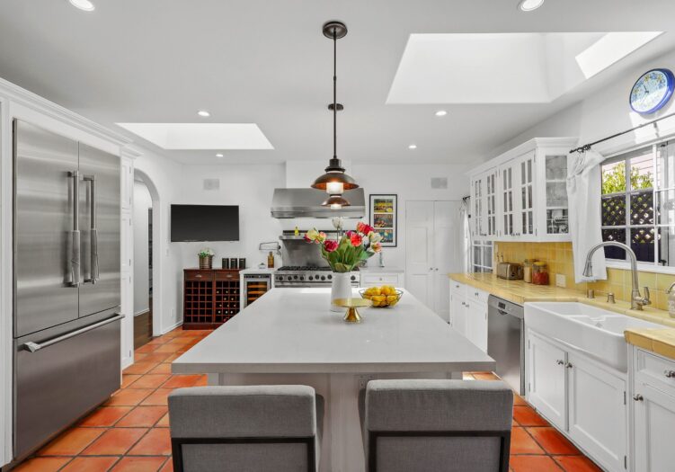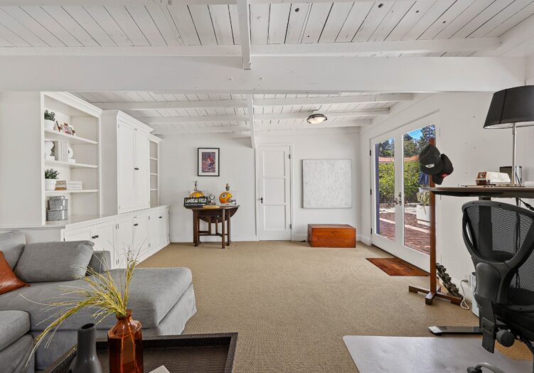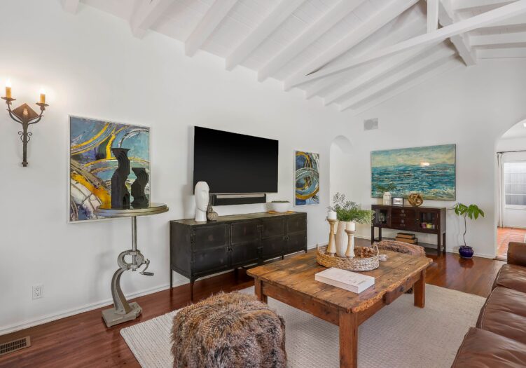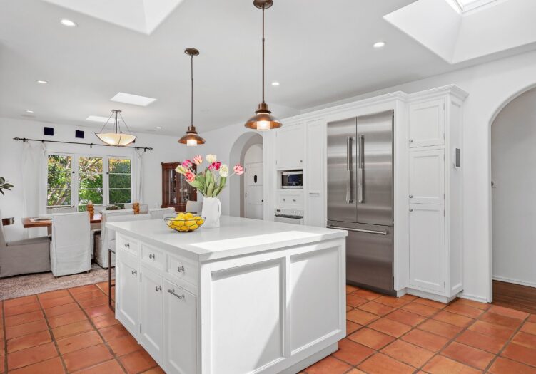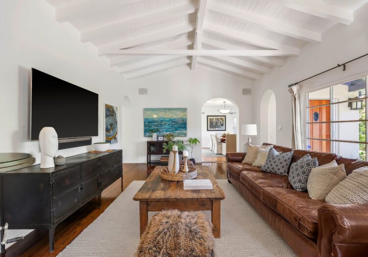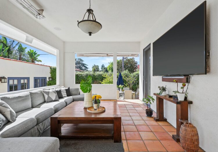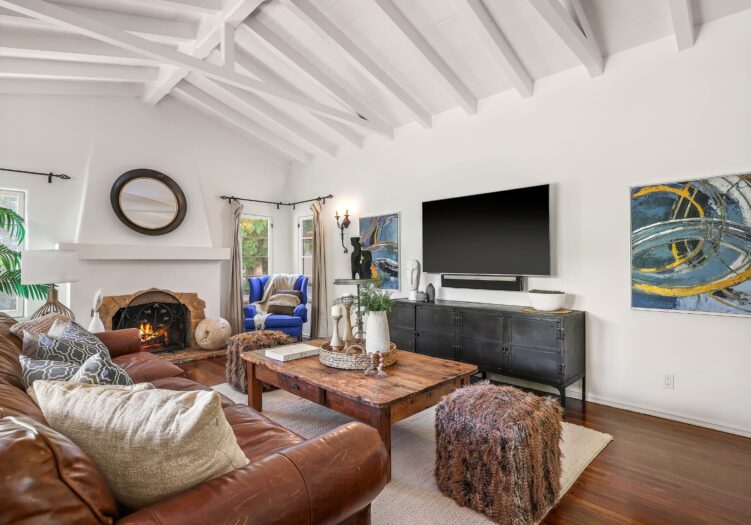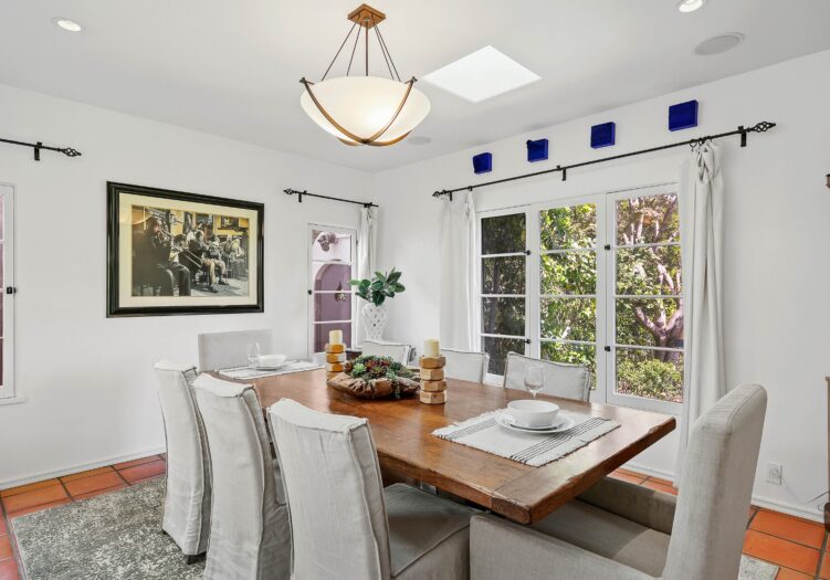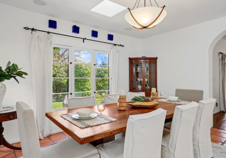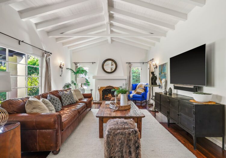As you walk in through this gated charming entrance, you are greeted with a Zen like feeling! This special Romantic Renovated 1930's Spanish Single Story home encompasses vaulted beam ceilings in the living room with a cozy fireplace which leads to a sumptuous state of the art kitchen with top of the line stainless appliances and large island, breakfast bar, plus dining room for family gatherings! The house also entails hardwood floors throughout, beautiful archways and period built-ins plus loads of natural light and skylights! Two other generous sized bedrooms share a bathroom. The oversized primary suite has floor to ceiling doors overlooking the beautiful yard, large sumptuous bathroom with soaking tub, skylights and walk-in closet! As you walk outside you are greeted with a covered media/family room which is great for entertaining!! The yard has a fire pit area and is currently planted with drought conscious desert landscape which gives you plenty of room to create your own personal oasis and room for a pool! The detached garage was made into an office and 1BR guest suite with a bathroom. Garage can be converted back and still have a guest house/outside office! Upgraded tankless water heater, water filter system throughout, electric vehicle charger and back-up generator. Close to restaurants & shopping and all Montana Ave. has to offer! This one won't last!