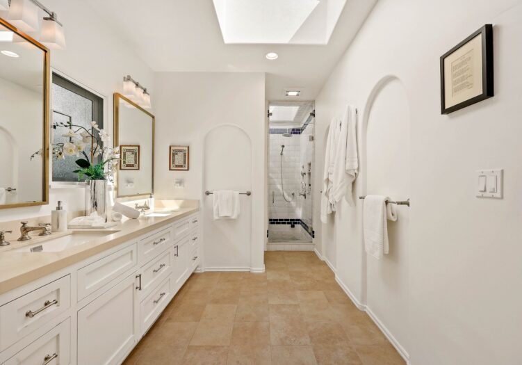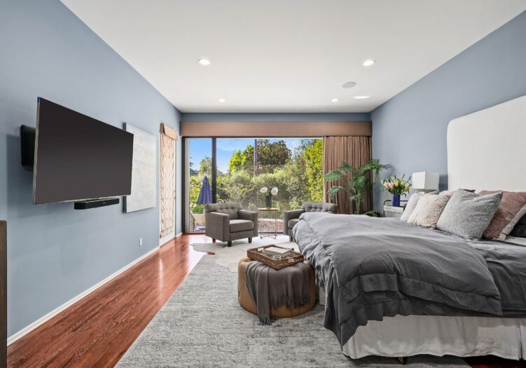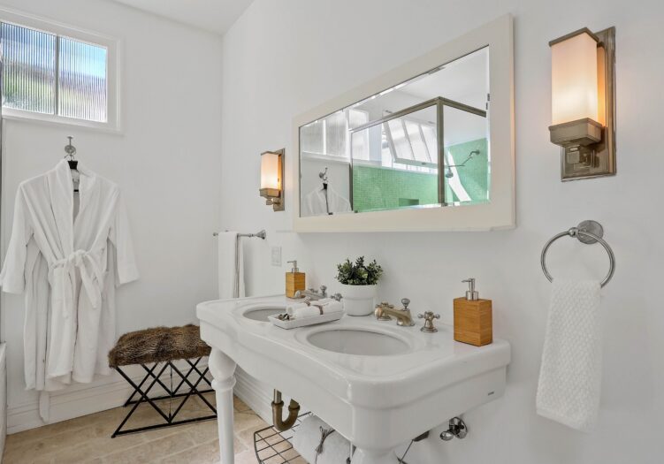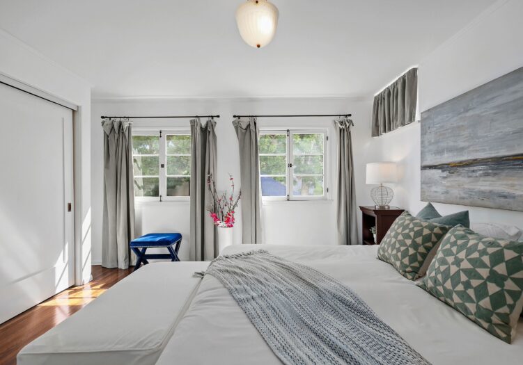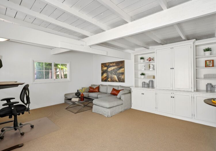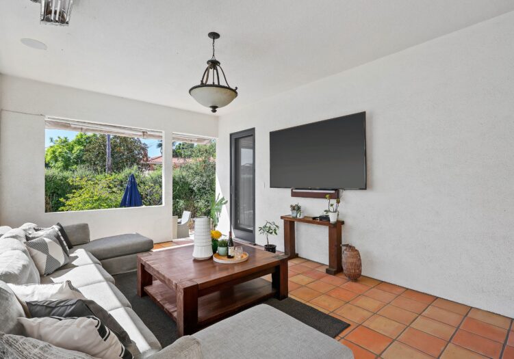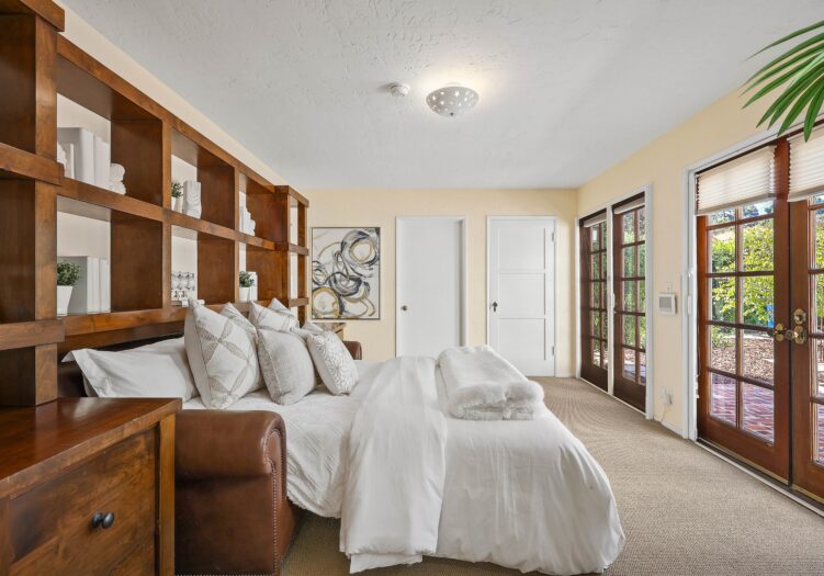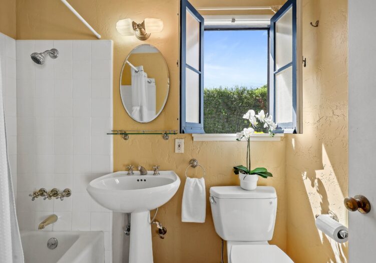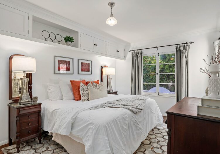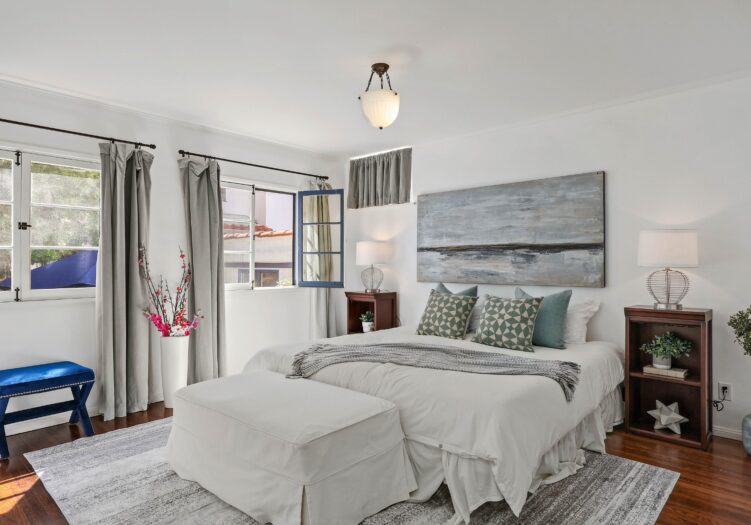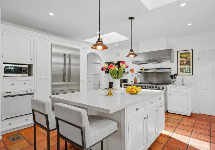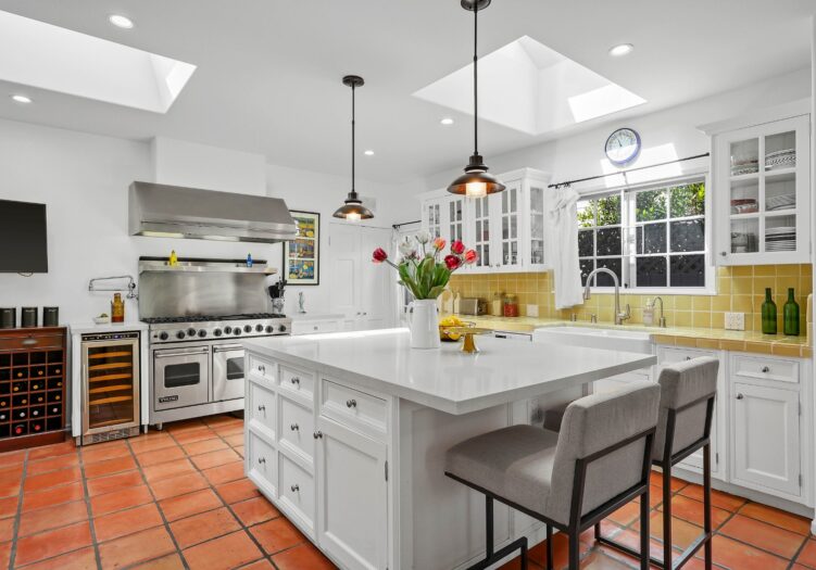 As you walk in through this gated charming entrance, you are greeted with a Zen like feeling! This special Romantic Renovated 1930's Spanish Single Story home encompasses vaulted beam ceilings in the living room with a cozy fireplace which leads to a sumptuous state of the art kitchen with top of the line stainless appliances and large island, breakfast bar, plus dining room for family gatherings! The house also entails hardwood floors throughout, beautiful archways and period built-ins plus loads of natural light and skylights! Two other generous sized bedrooms share a bathroom. The oversized primary suite has floor to ceiling doors overlooking the beautiful yard, large sumptuous bathroom with soaking tub, skylights and walk-in closet! As you walk outside you are greeted with a covered media/family room which is great for entertaining!! The yard has a fire pit area and is currently planted with drought conscious desert landscape which gives you plenty of room to create your own personal oasis and room for a pool! The detached garage was made into an office and 1BR guest suite with a bathroom. Garage can be converted back and still have a guest house/outside office! Upgraded tankless water heater, water filter system throughout, electric vehicle charger and back-up generator. Close to restaurants & shopping and all Montana Ave. has to offer! This one won't last!