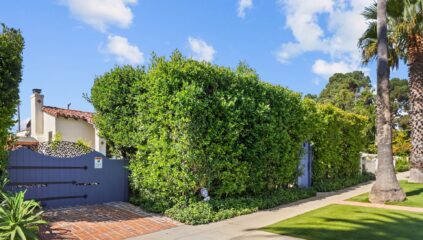 As you walk in through this gated charming entrance, you are greeted with a Zen like feeling! This special Romantic Renovated 1930's Spanish Single Story home encompasses vaulted beam ceilings in the living room with a cozy fireplace which leads to a sumptuous state of the art kitchen with top of the line stainless appliances and large island, breakfast bar, plus dining room for family gatherings! The house also entails hardwood floors throughout, beautiful archways and period built-ins plus loads of natural light and skylights! Two other generous sized bedrooms share a bathroom. The oversized primary suite has floor to ceiling doors overlooking the beautiful yard, large sumptuous bathroom with soaking tub, skylights and walk-in closet! As you walk outside you are greeted with a covered media/family room which is great for entertaining!! The yard has a fire pit area and is currently planted with drought conscious desert landscape which gives you plenty of room to create your own personal oasis and room for a pool! The detached garage was made into an office and 1BR guest suite with a bathroom. Garage can be converted back and still have a guest house/outside office! Upgraded tankless water heater, water filter system throughout, electric vehicle charger and back-up generator. Close to restaurants & shopping and all Montana Ave. has to offer! This one won't last!