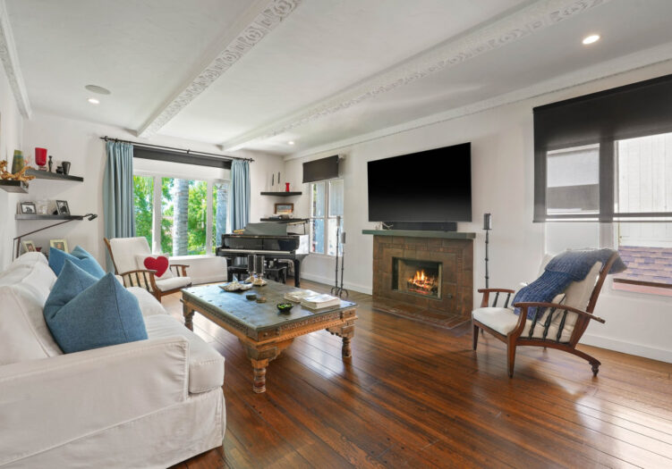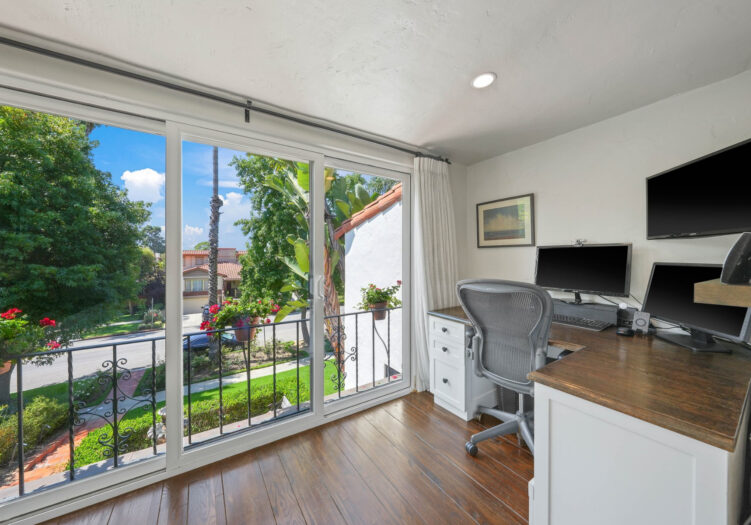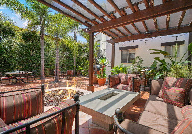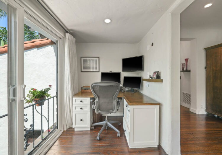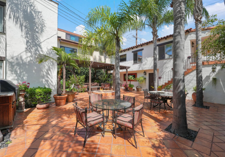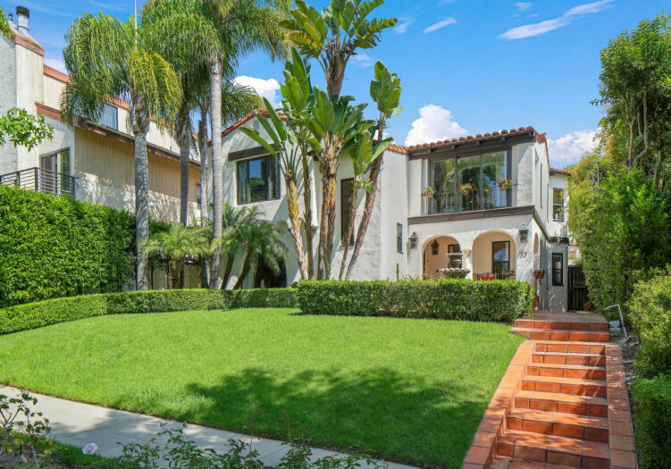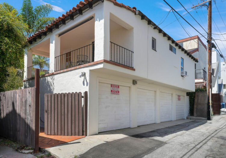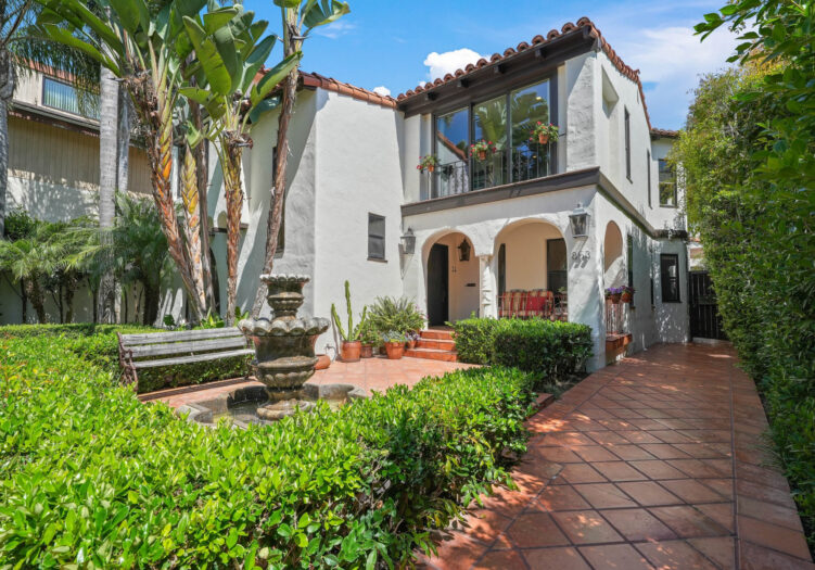 Unique opportunity to own this gorgeous Spanish style gated Triplex in prime Santa Monica!! The front remodeled 2BR, 2BA duplex has beautifully appointed features such as vaulted beamed ceilings in the living room with a picturesque view of the front yard and cozy fireplace! Gourmet kitchen with built-ins, stainless appliances, wine fridge, farm sink, and breakfast area with tons of natural light which leads to dining room and office. Two good sized bedrooms with their own baths! Plus Laundry room. Generous romantic community courtyard with Barbeque area and fire pit! One bedroom and bath with its own balcony above the four car garage's! Close proximity to restaurants and stores and everything Montana Ave. offers! Top floor duplex will be Vacant.