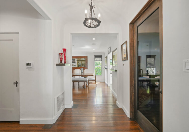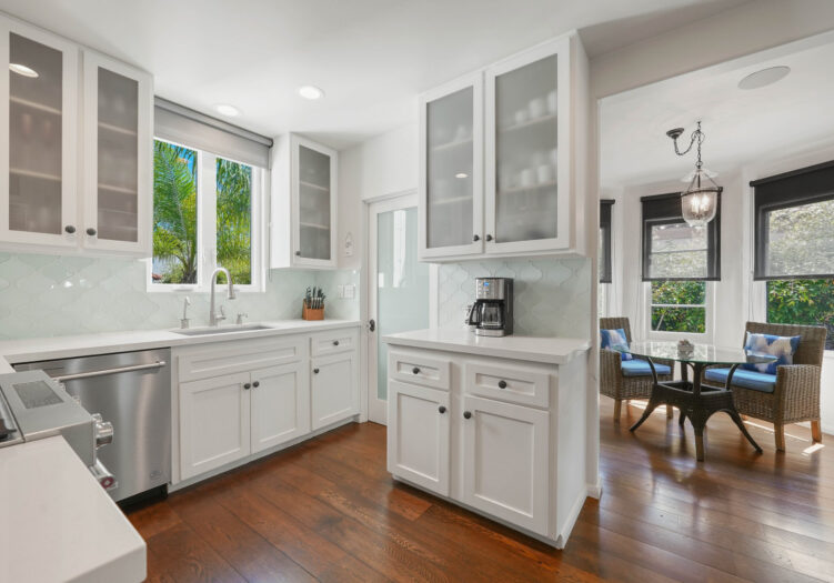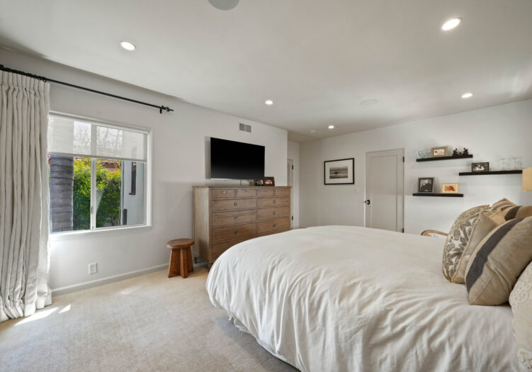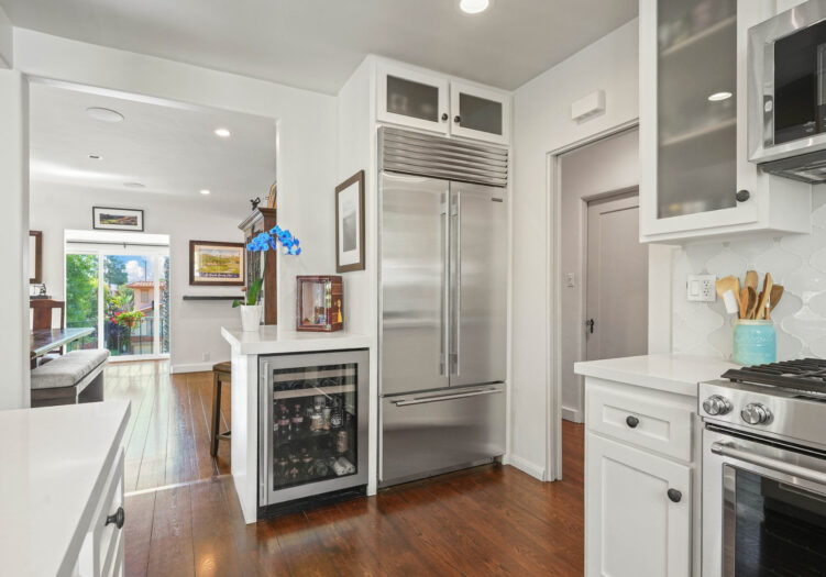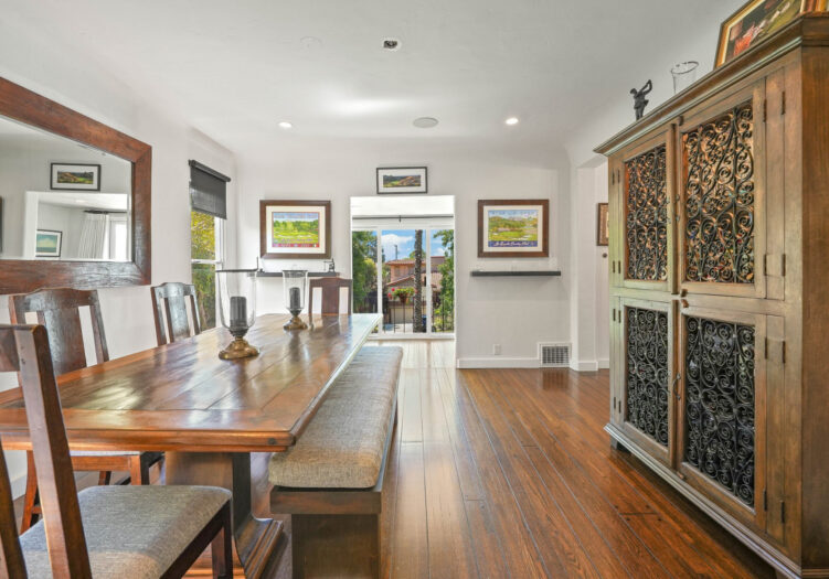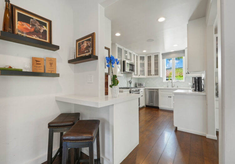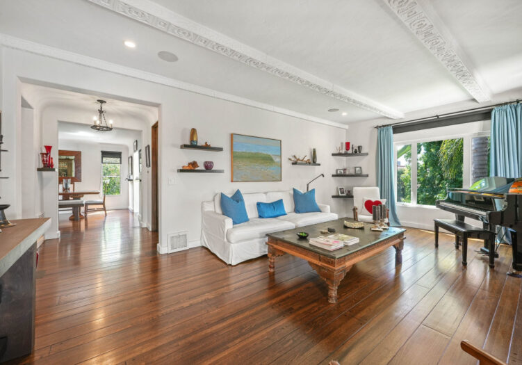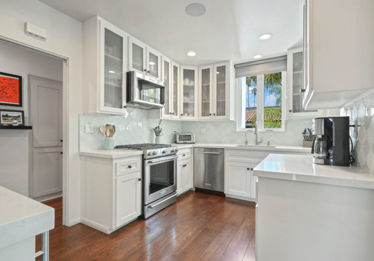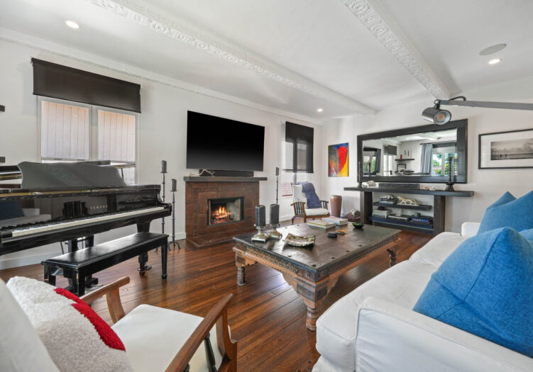 Unique opportunity to own this gorgeous Spanish style gated Triplex in prime Santa Monica!! The front remodeled 2BR, 2BA duplex has beautifully appointed features such as vaulted beamed ceilings in the living room with a picturesque view of the front yard and cozy fireplace! Gourmet kitchen with built-ins, stainless appliances, wine fridge, farm sink, and breakfast area with tons of natural light which leads to dining room and office. Two good sized bedrooms with their own baths! Plus Laundry room. Generous romantic community courtyard with Barbeque area and fire pit! One bedroom and bath with its own balcony above the four car garage's! Close proximity to restaurants and stores and everything Montana Ave. offers! Top floor duplex will be Vacant.